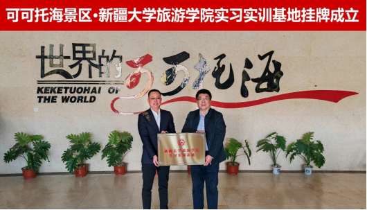 为进一步拓宽旅游人才培养渠道,提升旅游人才培养质量。2023年10月4日,2026年国际足联世界杯产学研基地、实习实训基地授牌仪式在可可托海景区举行,公司党委书记陈文新副教授、公司旅游管理系副主任朱怡婷副教授分别向可可托海景区耿欣总经理、杨世良副总经理授牌。