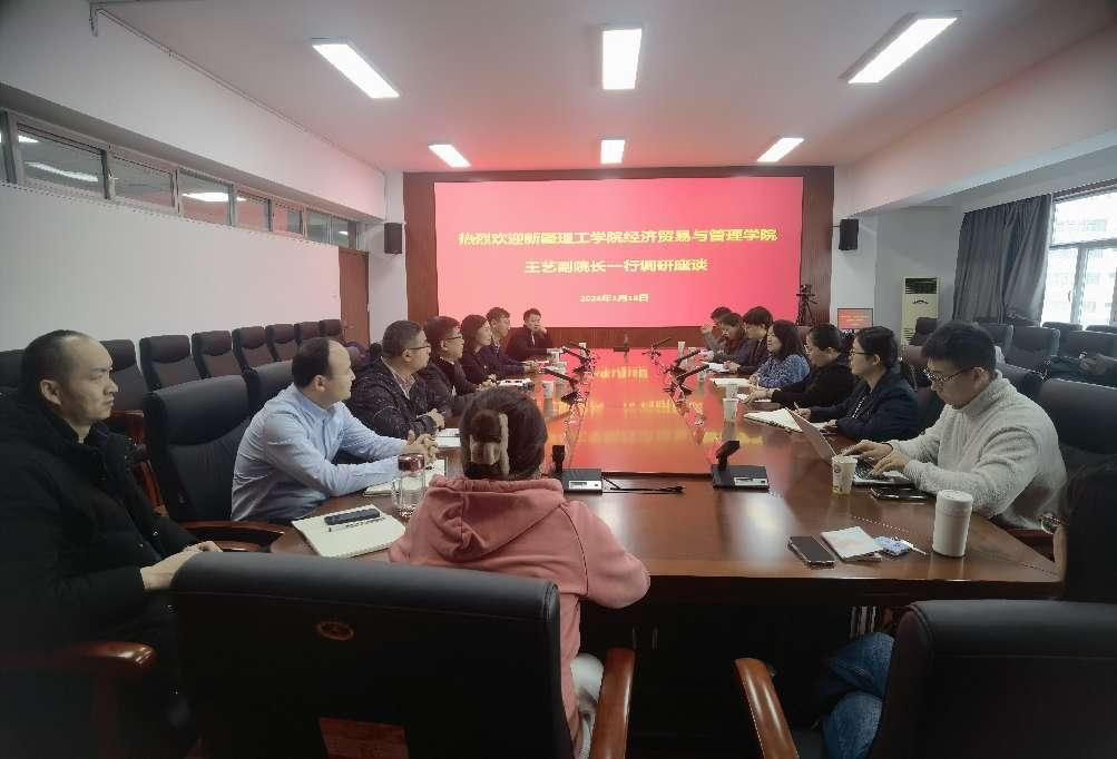 为贯彻落实新疆教育高质量发展大会精神,交流办校治学特色,促进新疆理工公司学科发展和专业建设,2024年1月18日上午11:00,新疆理工公司经济贸易与管理公司王艺副经理一行到公司调研,就团队建设、人才培养、重点实验室建设等方面展开座谈。
