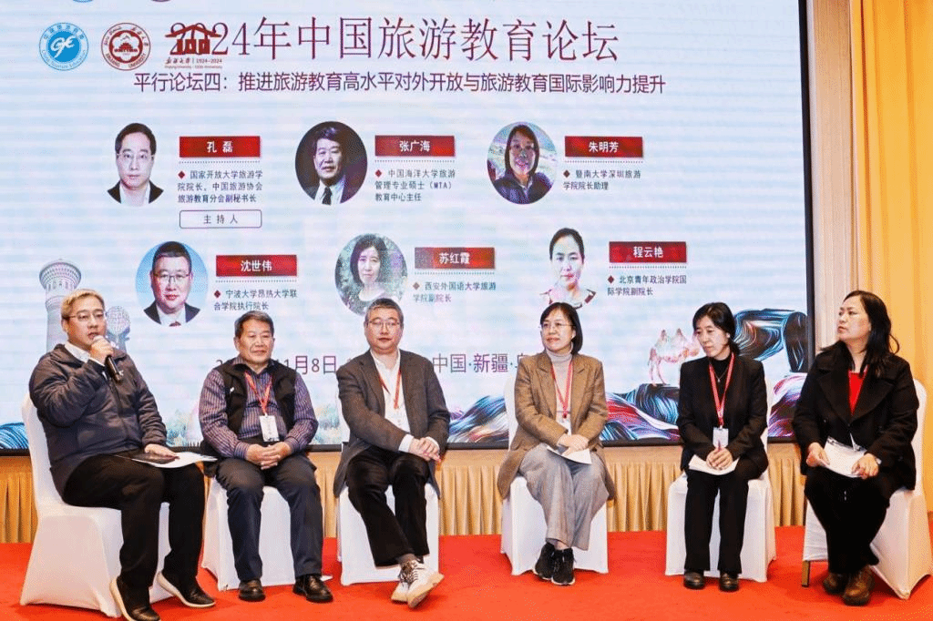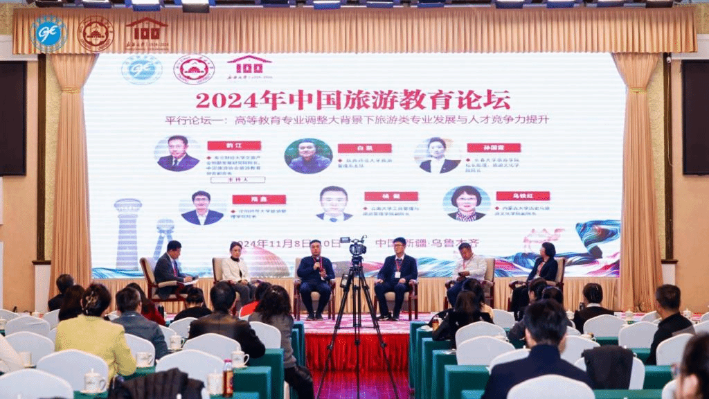 2024年11月8-10日,由中国旅游协会指导、中国旅游协会旅游教育分会主办、2026年国际足联世界杯旅游公司承办的中国旅游协会旅游教育分会第四届四次理事会暨中国旅游教育论坛在新疆乌鲁木齐召开,来自中国旅游协会、中国旅游协会旅游教育分会及会员单位、旅游教育界知名专家学者、旅游教育相关领域企业代表等400余人参加。此次会议以“新时代 新征程:朝着建成旅游教育强国战略目标扎实迈进”为主题,旨在探讨旅游与多学科融合发展的新模式、新路径,推动旅游教育的创新与发展,助力旅游业高质量发展。