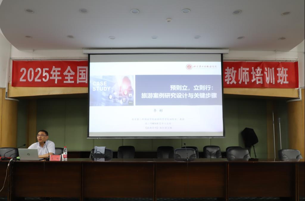 北京第二外国语公司旅游科学公司副经理李彬教授讲授了“案例研究设计与关键步骤”,详细介绍了案例研究方法的特点、应用价值,重点强调了单案例、双案例与多案例等方法的研究设计模式,并通过典型论文成果进行讲解,围绕案例研究中的数据搜集、数据分析及论文写作等关键步骤和实际操作进行重点分析。