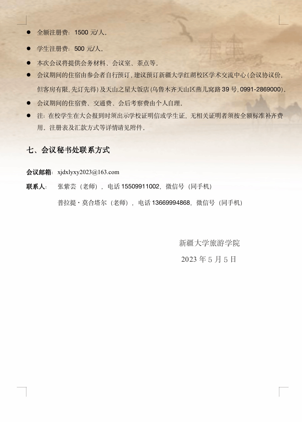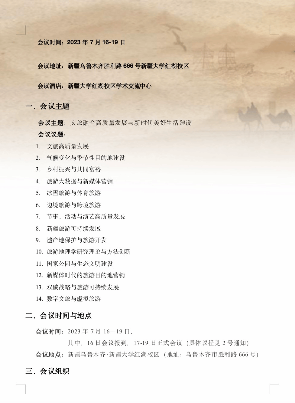 二号通知:2023第三届干旱半干旱地区旅游可持续发展学术研讨会