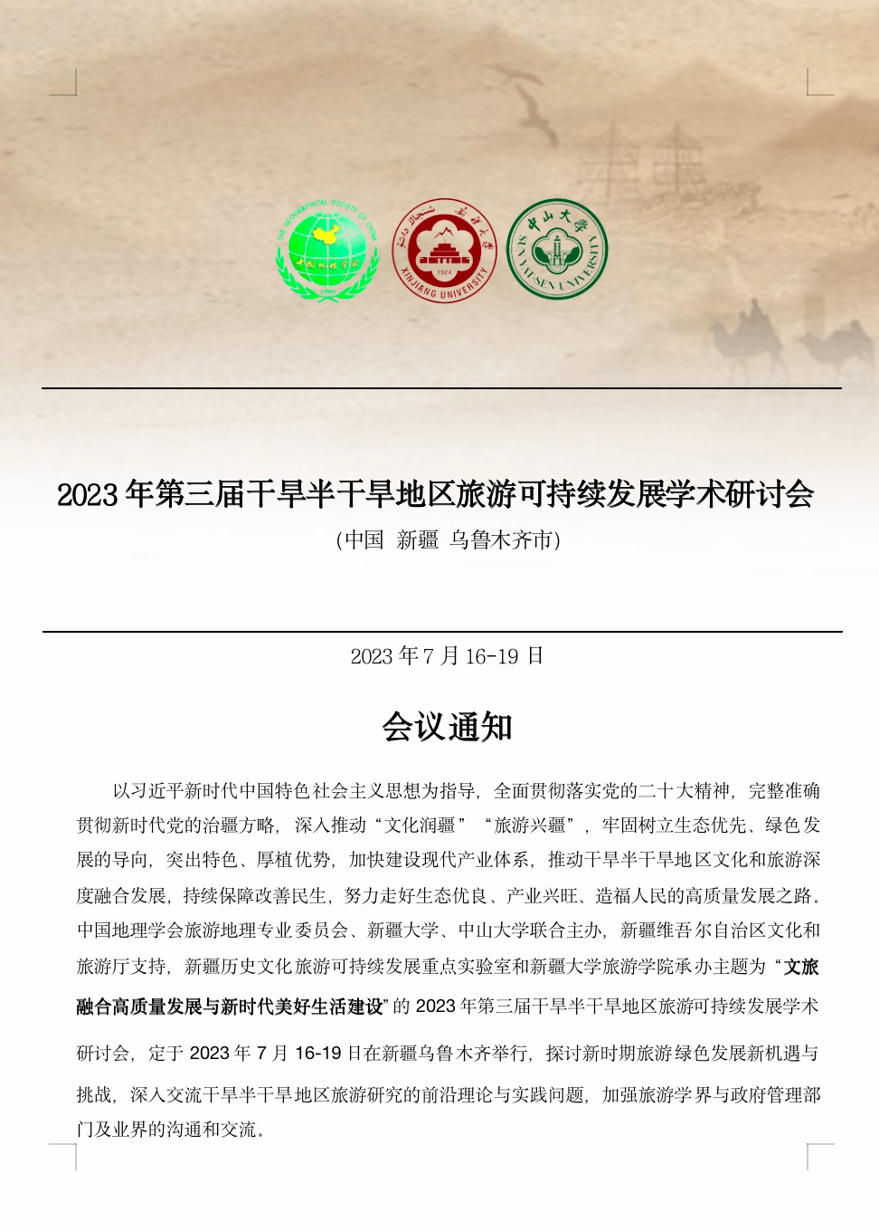 会议通知 2023年第三届干旱半干旱地区旅游可持续发展学术研讨会(一号通知)