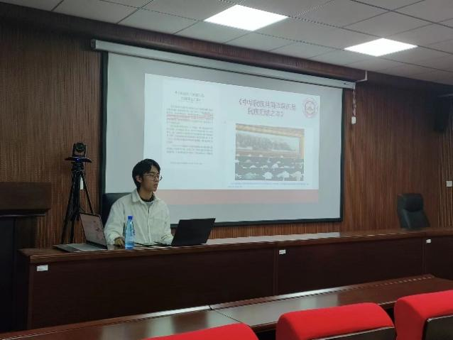 旅游22-1班宋绍展同学分享了《习近平著作选集》第一卷第十八篇《切实把思想统一到党的十八届三中全会精神上来》,这是习近平同志在中共十八届三中全会第二次全体会议上讲话的一部分。他结合文件具体内容与对自己的启发与感悟进行了读书分享,“紧紧依靠人民改革与我们的生活息息相关,也正因如此,新时代的十年人民的生活才得到了全方位的改善。”