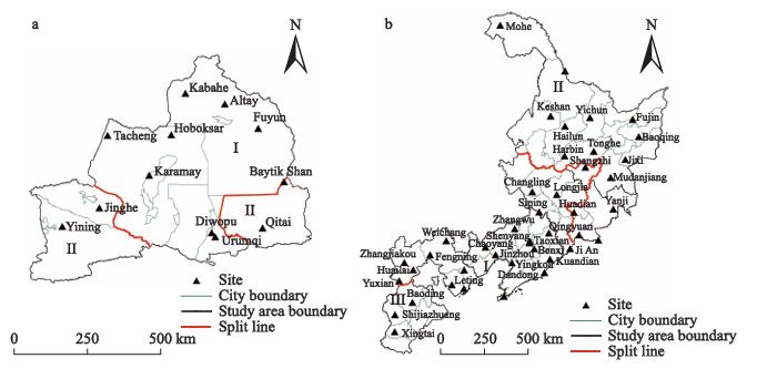 图4 中国新疆北部、河北、黑龙江、吉林和辽宁冰雪运动气候适宜性的空间划分