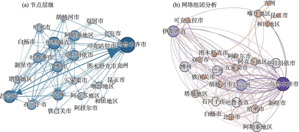 (3)兵地旅游城市可达性呈现中心向外围圈层递减结构,空间差异显著。兵地旅游经济呈现明显由乌昌为中心向外围逐级递减。兵地旅游经济联系共生网络呈现以乌鲁木齐都市圈为核心集群、喀什地区-克州-和田地区-昆玉市为次核心集群、伊犁州直-可克达拉市为明显族群特征。