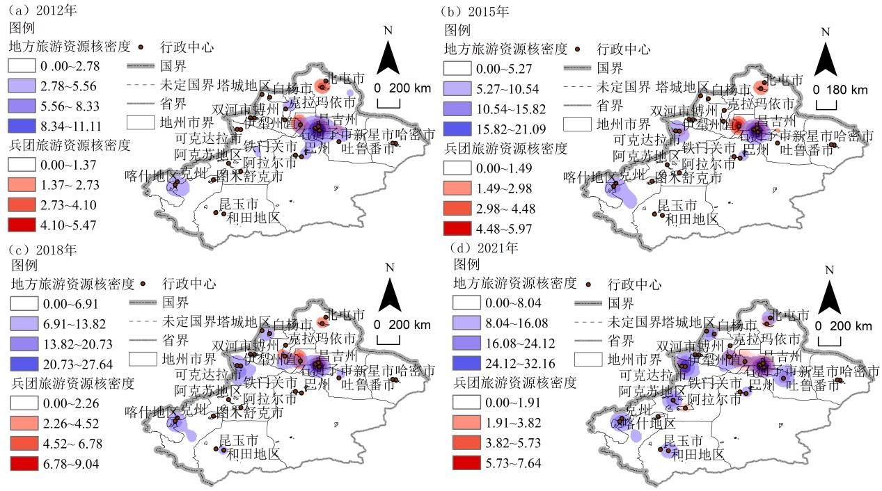 图 1 兵地旅游资源核密度分布