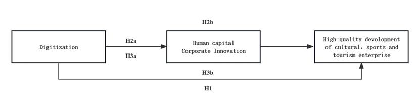 基于理论分析,构建了数字化影响文化、体育和旅游企业高质量发展的理论模型,如图1所示。
