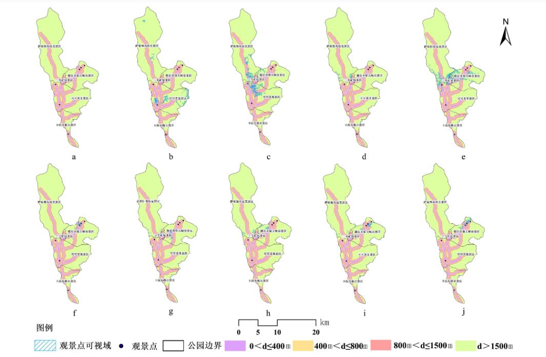 值得注意的是,以美景度为优势的可可苏里、伊雷木湖、金三角,结合GIS技术评价后,综合评分排名有所后移。美景度不具优势的卡拉先格尔地震断裂带,结合GIS评价后,综合评分排名前移。参观者在游览中常按自己喜好的路线进行,依据主观审美判断景观优美程度更符合参观者衡量景观质量的标准,GIS技术从宏观的角度把握景观特征,但观测视角不同于人的审美。反映出两种方法在景观质量评价中各有侧重。