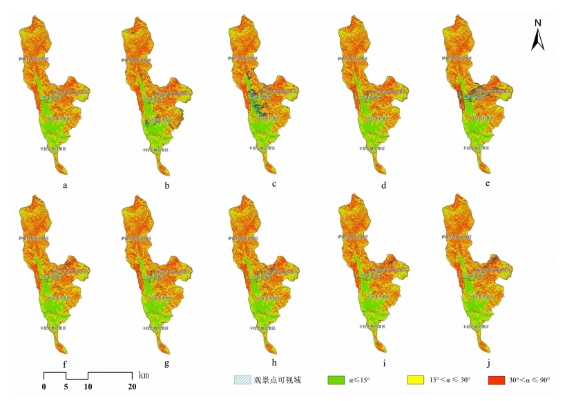 图2各观景点可视域相对坡度敏感度