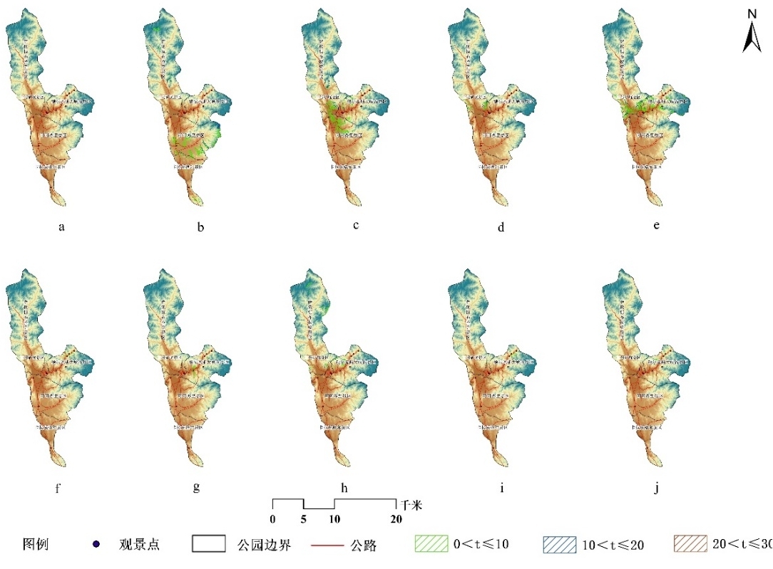 图4各观景点可视域的出现几率敏感度