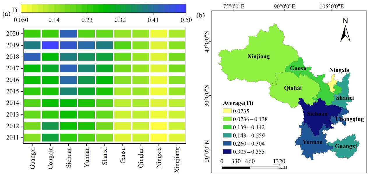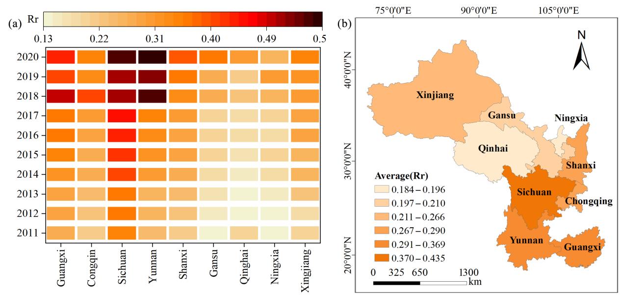 Figure 1.Spatiotemporal characteristics of the comprehensive level of RR.