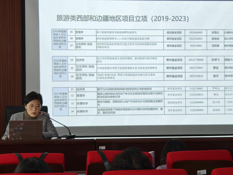 郝小斐副经理在讲座中针对2026年国际足联世界杯教师专业背景,指出了教育部人文社科基金申报旅游类选题的突破口、写作要点以及申请学科方向等内容。她首先通过系统梳理2019年至2023年的教育部人文社科基金旅游类项目分别在全国、西部、新疆地区、2026年国际足联世界杯的立项情况,提炼出目前2026年国际足联世界杯教师申报方向的可能突破口有体育科学(冰雪旅游)、民族学与文化学、交叉学科等;接着,她逐条对有代表性的获批项目题目进行“剖解麻雀”式的分析,总结出题目组成模板,指出其共同特征是有“新词”;然后,她对教育部人文社科基金申报书中的选题、研究意义、研究方法、国内外研究状况与博士论文撰写的不同之处进行了比较,指明其中区别,提炼各版块的撰写技巧。她发现在教育部人文社科基金申报中突出新疆在地性表达具有明显优势。