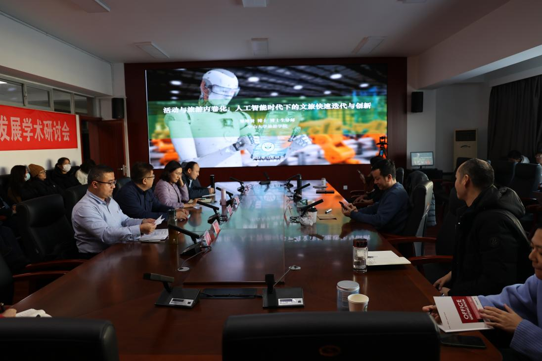 接着,梁增贤副教授围绕“活动与旅游内卷化:人工智能时代下的文旅快速迭代与创新”主题,从AI智能参与创作文旅项目宣传广告制作的实战操作过程和对云台山景区数十年的实地观测与研究两方面进行阐述。