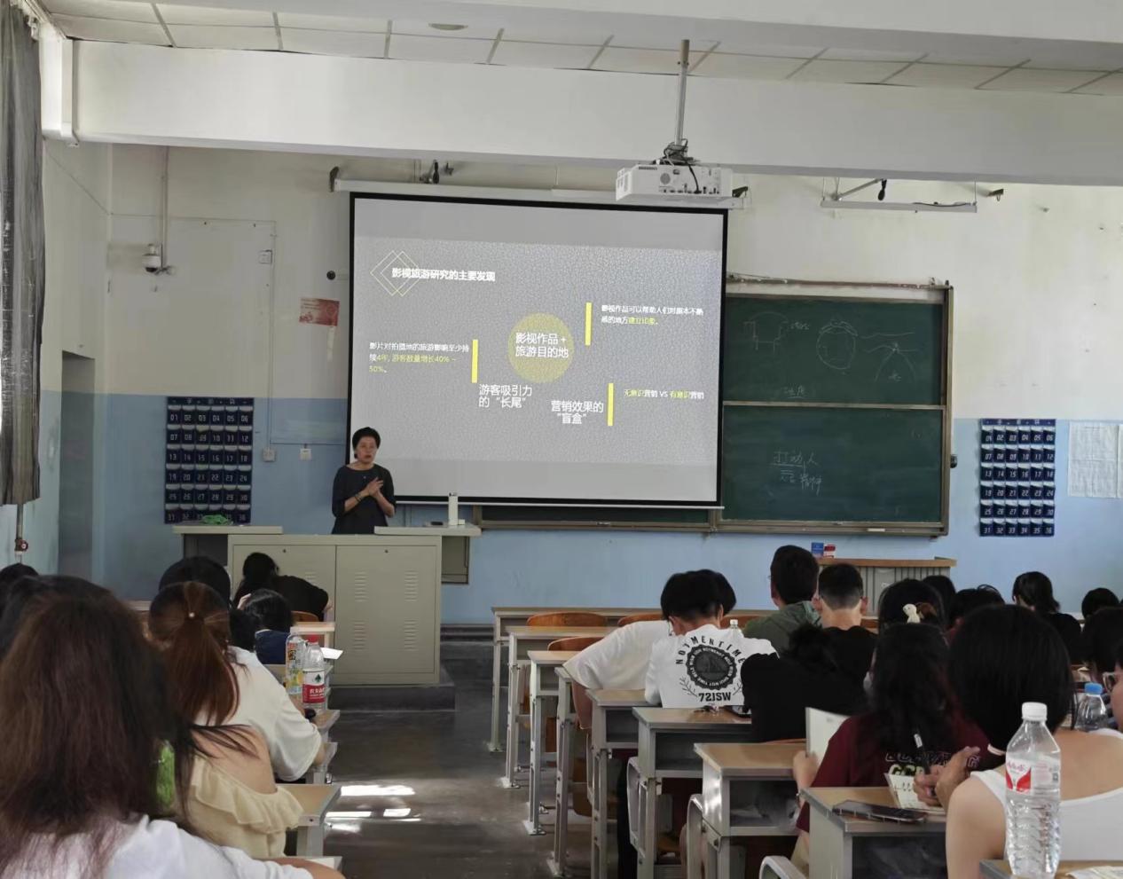学术讲座分为上下两场,在上午场次,郝小斐教授为员工讲授《影视旅游可持续发展模式探索》相关研究。讲座伊始,郝小斐教授为员工介绍自己的教育学习经历,帮助员工更好地树立长远的学习规划,同时鼓励大家在未来的学习中更好结合自己的兴趣爱好进行学习探究。随后进行了影视旅游专题的讲解,内容主要分为四部分,分别是影视作品和旅游目的地的关系、影视旅游何以“可持续发展”、影视媒介流行文化与目的地营销相关研究以及最后总结与实践建议。在讲座中点明影视作品对旅游目的地的重要营销宣传作用以及社会影响力。同时随着旅游研究的不断发展,影视旅游相关研究逐渐受到重视。郝小斐教授在介绍了影视旅游的概念范畴之后,指出影视旅游对旅游目的地的经济、文化与环境影响。同时影视旅游对游客的“长尾效应”,可以不断支持旅游目的地的可持续发展。实现经济效益和社会效益的平衡能帮助影视旅游目的地实现更好的发展。讲座强调了培养可持续意识的重要性,点明要推动区域旅游部门对营销契机的识别与跟踪。最后与同学进行提问交流环节,讲座活动顺利结束。